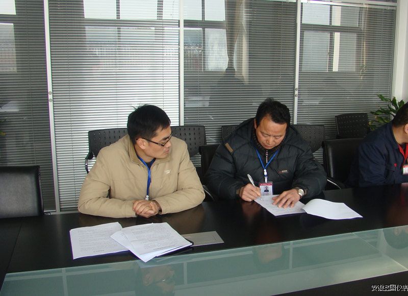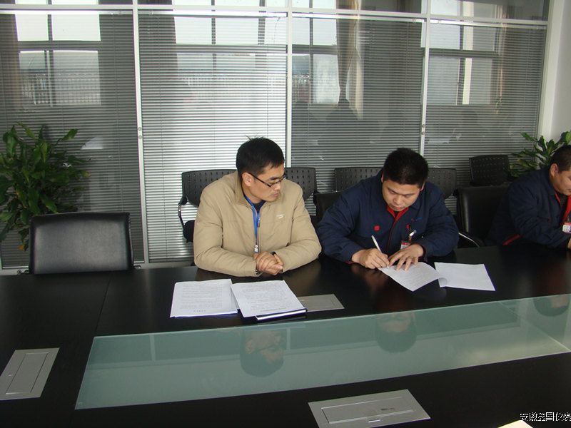 2月16日下午,公司总经理赵永鼎在一楼会议室分别与铠拉车间、铠一车间、铠二车间、质检部、计量室以及丝材库等部门签订了2012年安全生产目标管理责任书。