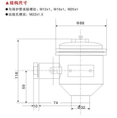 与保护管连接螺纹:M12x1,M16x1,M20x1