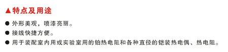 ●用于装配室内用或实验室用的铂热电阻和各种直径的铠装热电偶、热电阻。