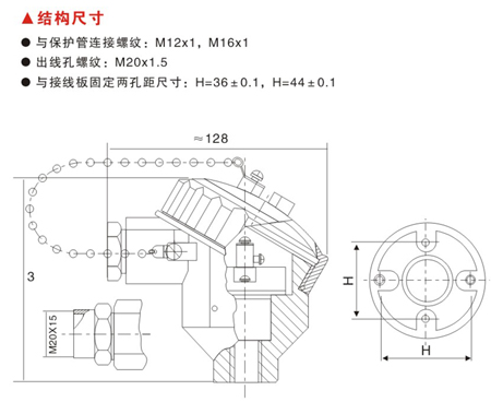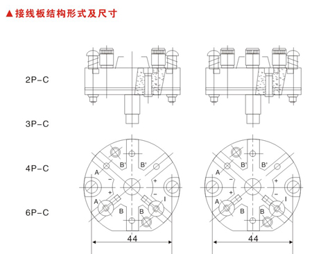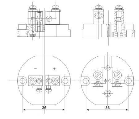 与接线板固定两孔距尺寸: H =36±0.1,H=40±0.1