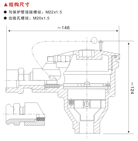 与保护管连接螺纹: M22x1.5