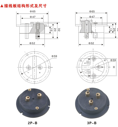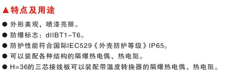 ●H=36的三芯接线板可以装配带温度转换器的隔爆热电偶、热电阻。