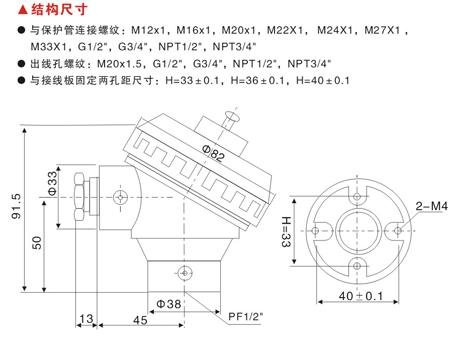 ● H =33±0.1的可以装配国外接线版或温度转换器与国际接轨。