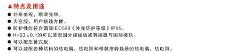 ●可以装配各种结构的热电偶、热电阻和带温度转换器的热电偶、热电阻。