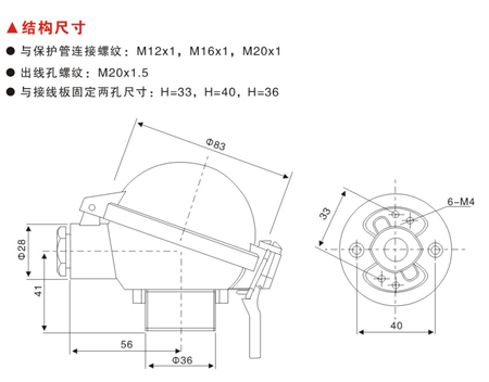 与接线板固定两孔距尺寸: H =33,H=40,H=36