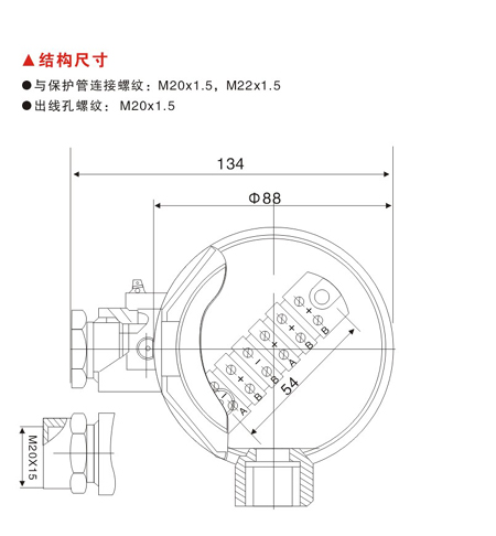 与保护管连接螺纹:M20x1.5,M22x1.5