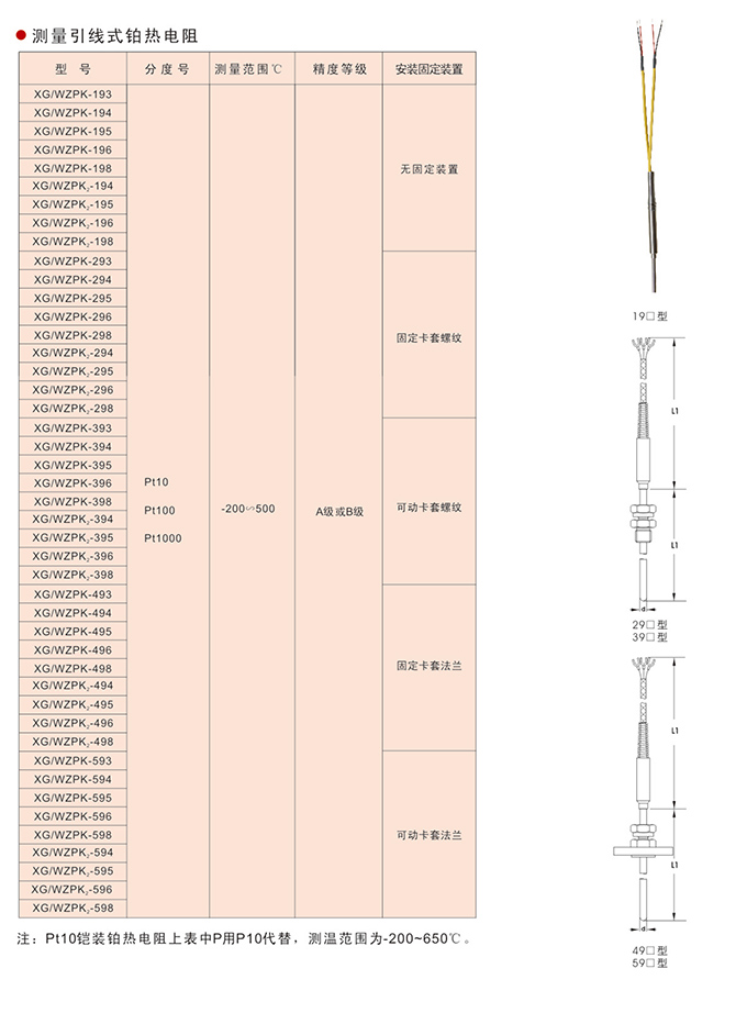 带测量引线式铠装铂热电阻,采用引进型的铂电阻测温元件,具有灵敏、热响应时间快、质量稳定、易弯曲、抗震性好、使用寿命长等优点。铠装铂电阻外保护套采用不锈钢,内充满高密度氧化物质绝缘体,因此,它具有很强