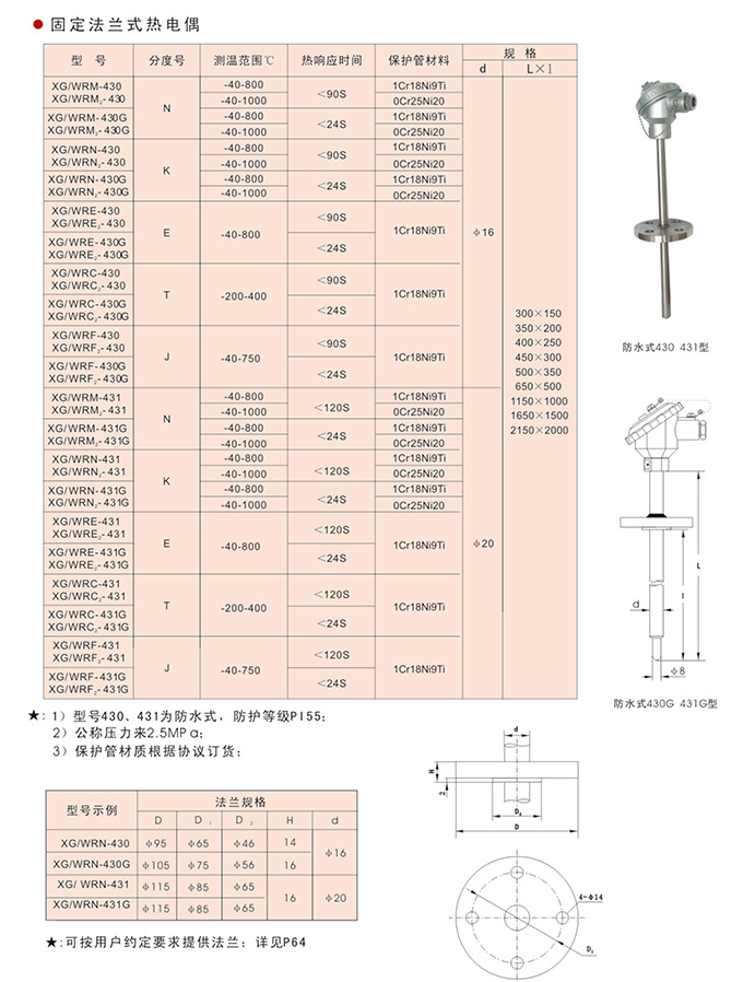 1)型号430、431为防水式,防护等级IP55;