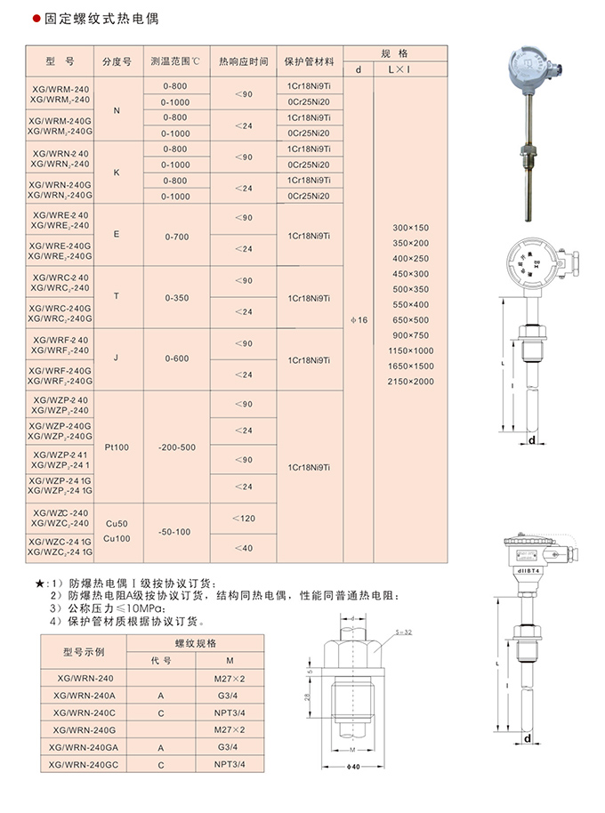 固定螺纹防爆热电偶(阻):