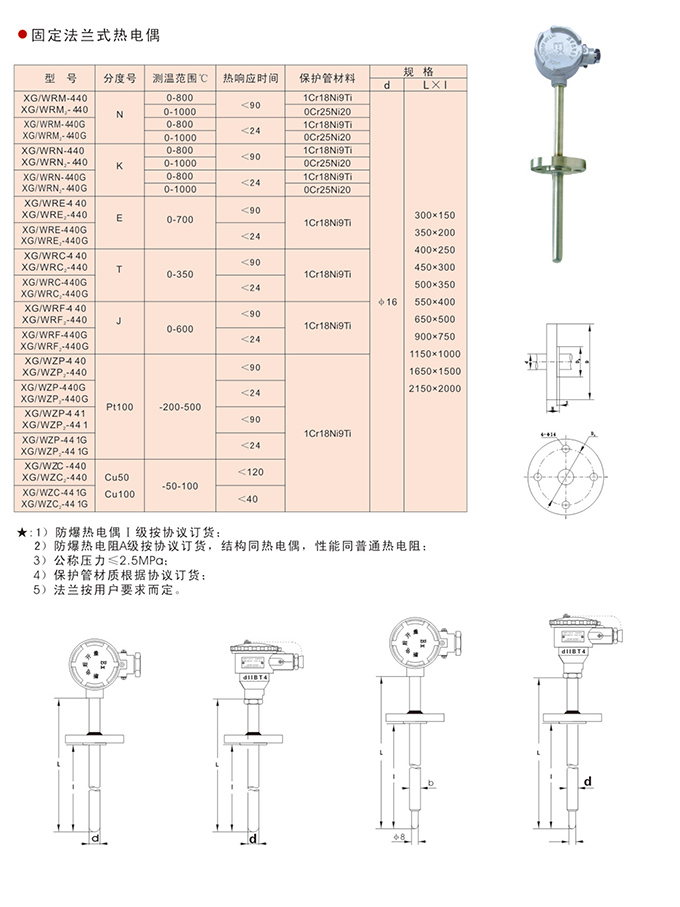 固定法兰防爆热电偶(阻):
