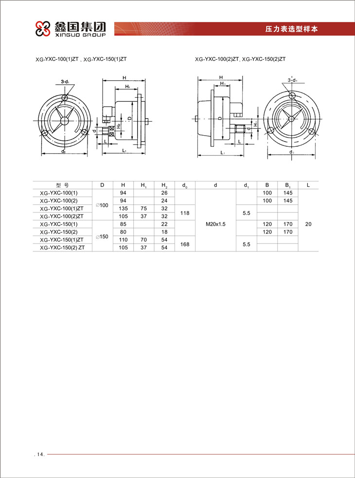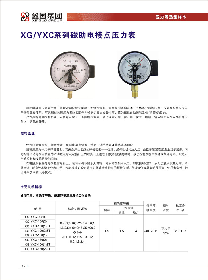 XG / YXC 系列磁助电接点压力表: