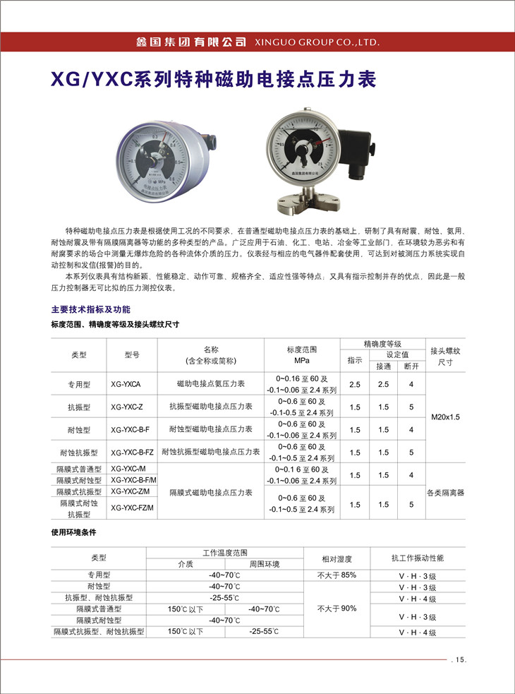 XG / YXC 系列特种磁助电接点压力表: