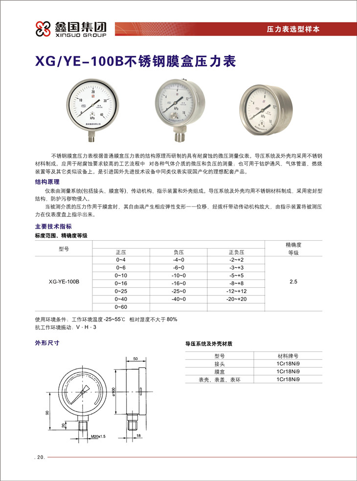 不锈钢膜盒压力表根据普通膜盒压力表的结构原理而研制的具有耐腐蚀的微压测量仪表。导压系统及外壳均采用不锈钢材料制成。不锈钢膜盒压力表应用于耐腐蚀要求较高的工艺流程中,对各种气体介质的微压和负压的测量。