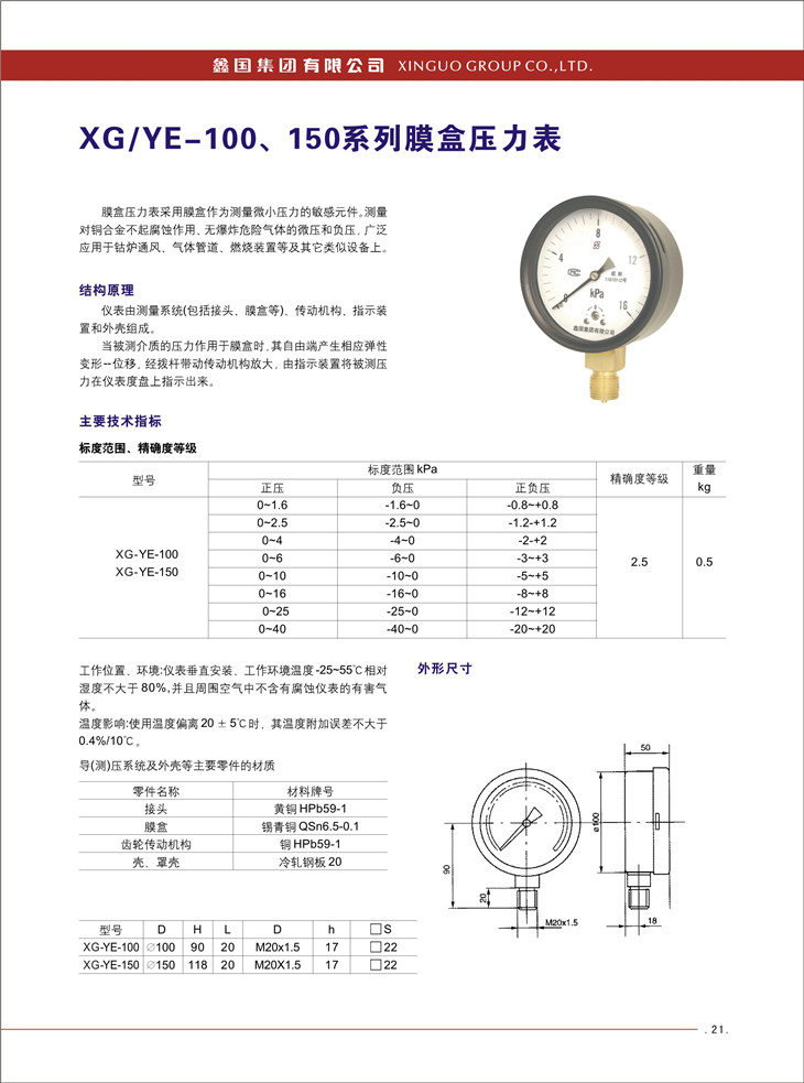 XG / YE -100、150系列膜盒压力表: