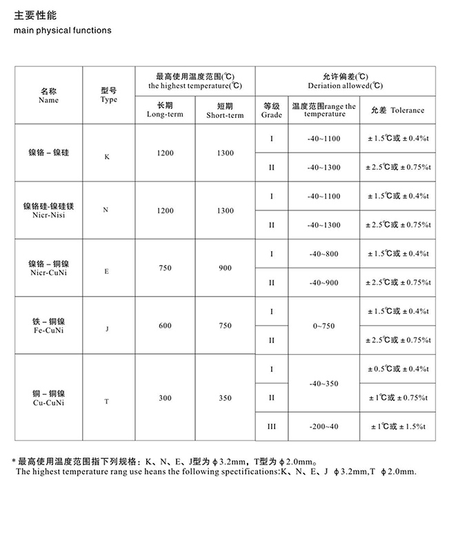 廉金属热电偶合金具有热电势高、温度与热电势关系呈线性、热电势长期稳定性好等特点,符合国 际电工委员会( IEC )的相应标准。