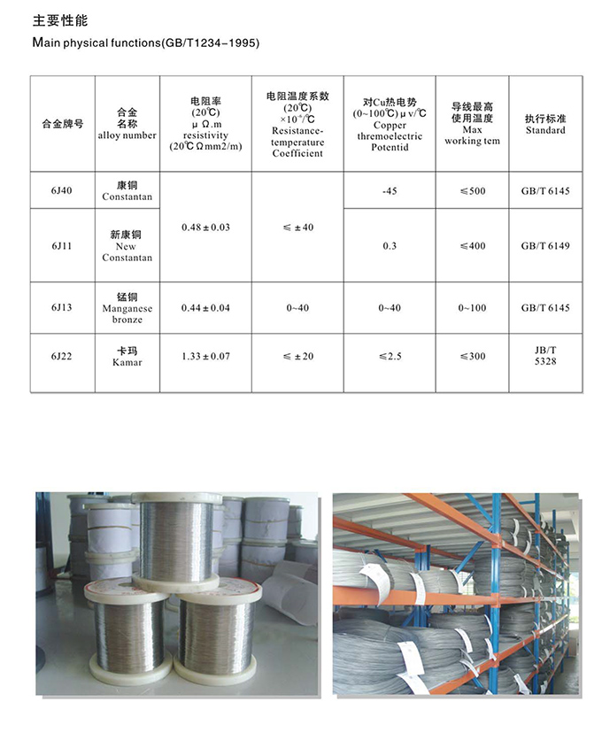 高电阻电热合金,供冶金、化工、机械、玻璃、陶瓷及家用电器等工业部门制造发热元件,各类电机的调压电阻器和制动电阻器。