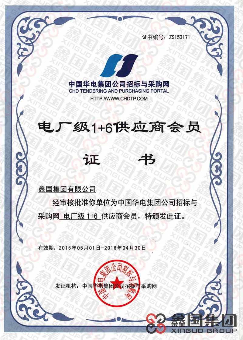 近日,鑫国集团有限公司取得了由中国华电集团公司(简称“中国华电”)招标与采购网颁发的“电厂级1+6供应商”供应商会员证书,正式成为中国华电的供应商之一。中国华电集团公司招标与采购网是中国华电对其供应商进行评价和管理的统一信息平台,所有潜在供应商均需通过该平台参加供应商评价后方能与中国华电进行合作,此内部评价也是中国华电进行采购和招标活动的重要参考。此次评价,中国华电招标与采购网对鑫国集团有限公司的注册资本、认证体系、银行资信、营业额、利润率、集团内外业绩等内容进行了全面采集,并结合鑫国集团有限公司在质量、履约和售后服务等方面的出色表现进行了综合评定,最终为鑫国集团有限公司颁发了供应商会员证书,充分体现了其对鑫国集团有限公司热电偶、热电阻、双金属温度计以及压力仪表等产品的高度认可。