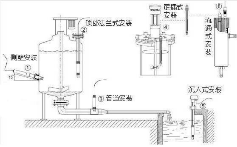请不要把电极直接投入水中,应使用电极安装支架或流通杯。安装前请务必使用生料带(3/4螺纹处)做好防水封闭工作,避免水进入DO电极中,造成DO电极电缆线短路。
