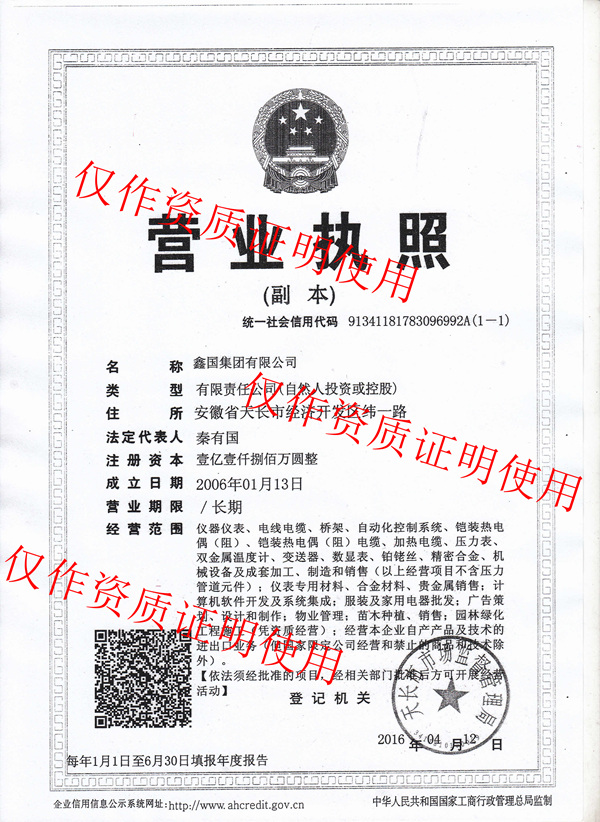 2016年4月12日,集团母公司鑫国集团有限公司完成了“三证合一”,领取了“一照一码”新营业执照,成为集团首个“三证合一”的法人单位。