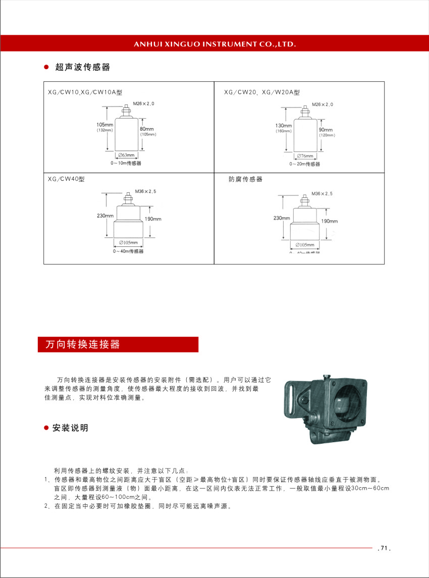XG /CW400、 XG /CW400A分体式超声波物位仪: