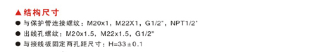 与保护管连接螺纹: M20x1,M22x1, G1/2", NPT1/2"